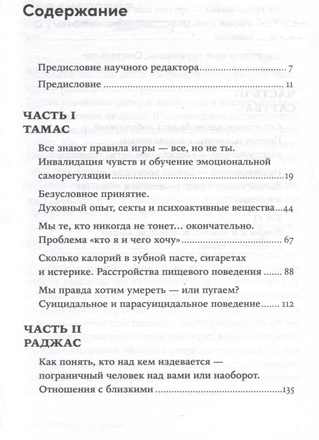 Врачи много лет ставили Дарье Завьяловой ложные диагнозы, а окружающие советовали ей «не придумывать» и «жить как все», стыдили, упрекали. Лишь получив поддержку психотерапевта она поняла, что происходит, научилась жить и справляться с ПРЛ. Ее книга — честный рассказ об особенностях этого расстройства, призванный облегчить жизнь других пограничных личностей и их близких. Его дополняют отсылки к научным работам, фрагменты подкастов и лекций психиатров, психотерапевтов, нейрофизиологов, а также реальных историй людей, живущих с ПРЛ.
