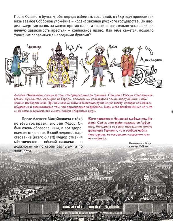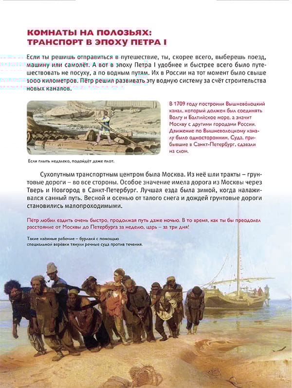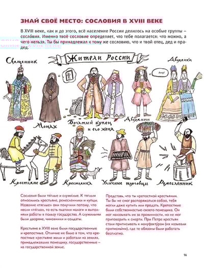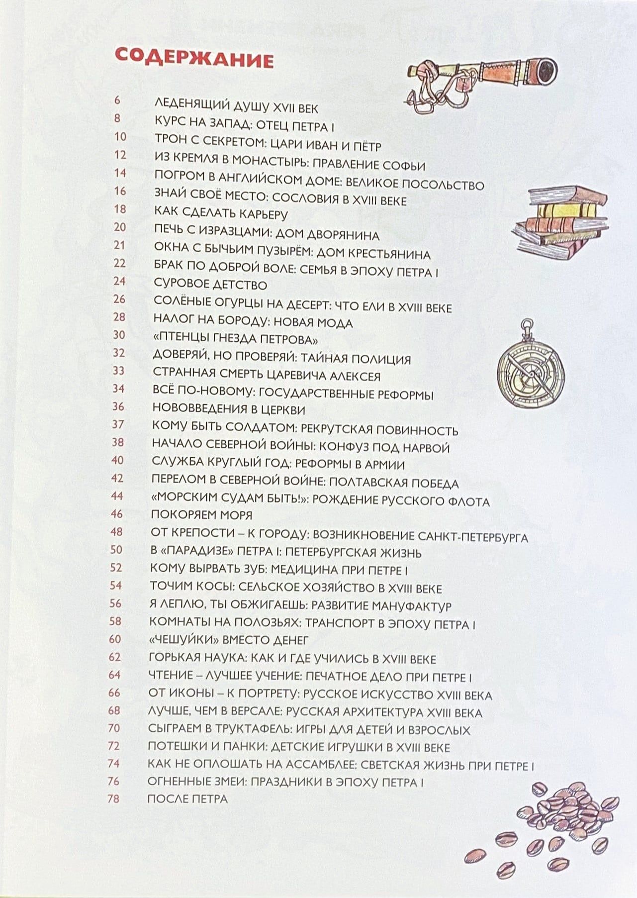 Эпоха Петра I - один из самых важных, переломных периодов в истории Российского государства. Читатели побывают в России конца XVII - начала XVIII века, узнают о победах русского флота и армии, о том, как был основан Санкт-Петербург и когда праздновали Новый год. Оригинальная детская энциклопедия расскажет не только о ключевых событиях эпохи, но и о повседневной жизни детей и их родителей. Куда пойти учиться? Почему на сладкое дают солёные огурцы? Какая игрушка никогда не сломается? Зачем мальчиков наряжают в платьица? Ответы на эти и многие другие вопросы дворянского и крестьянского быта ждут ребят на страницах нашей энциклопедии. Это уникальное издание по истории России станет для юных читателей настоящим путеводителем в захватывающий мир прошлого. Для младшего школьного возраста.