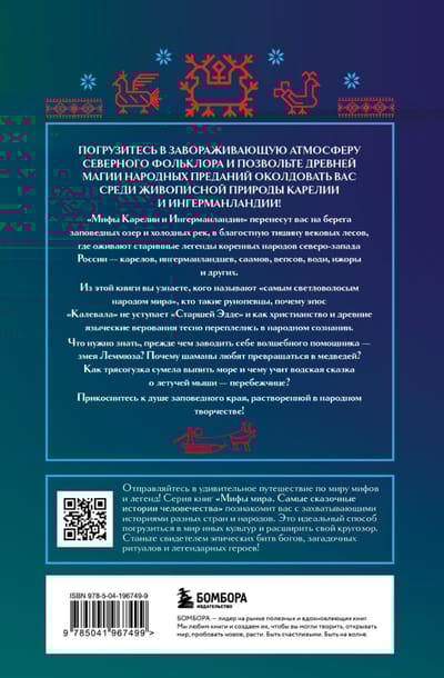 Валаамский монастырь и жемчужина деревянного зодчества Кижи, Онежское и Ладожское озера, заповедные места и древние петроглифы… Это далеко не все, чем славится Карелия и соседний с ней исторический регион с поэтичным названием Ингерманландия. Народы, по сей день населяющие эти живописные места, веками слагали песни-руны, похожие на скандинавские саги, сказки и легенды о сотворении мира, о богах и героях, о происхождении животных и людей и противостоянии света и тьмы. Откройте для себя культурное богатство многочисленных народов северо-запада России — карелов, ингерманландцев, саамов, вепсов, води, ижоры и других — с книгой «Мифы Карелии и Ингерманландии»!