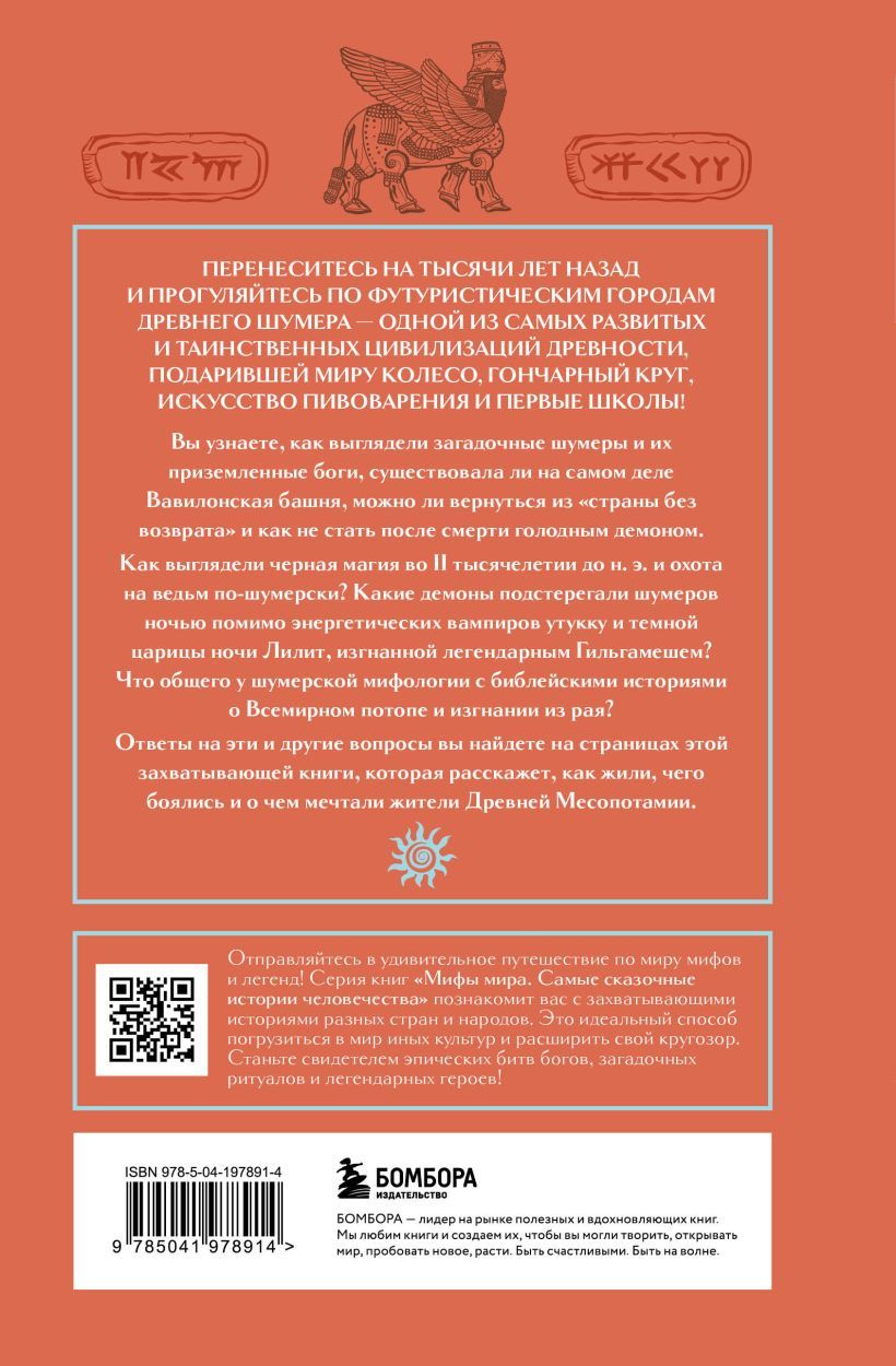На эти и другие вопросы вы найдете ответы на страницах этой книги, а цветные и черно-белые иллюстрации, QR-коды, ведущие на страницы музеев и энциклопедий, дополнят путешествие по долинам Тигра и Евфрата! Под яркой обложкой вас ждут пантеон и бестиарий шумерской мифологии, а также приложение с шумерскими уроками мудрости.