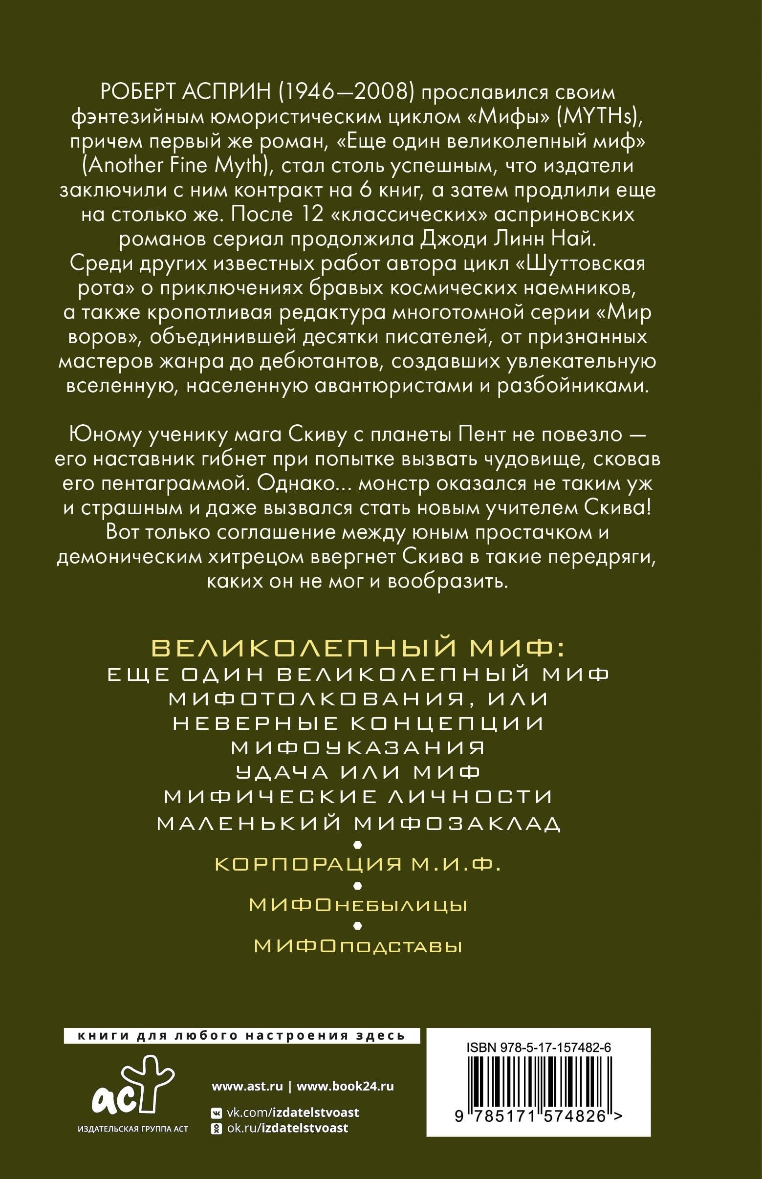 Роберт Асприн - прославился своим фэнтезийным юмористическим циклом «Мифы». Причем первый же роман, «Еще один великолепный миф», стал столь успешным, что издатели заключили с ним контракт на 6 книг, а затем продлили еще на столько же.