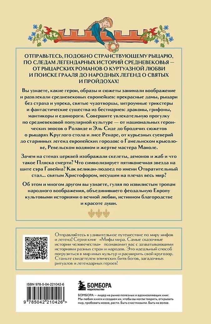Средние века — не просто эпоха, а целый космос, сотканный из контрастов: здесь любовная поэзия трубадуров соседствует с грубоватым площадным юмором фаблио, а героический пафос эпических поэм и пламенная вера уживаются с бытовой магией и курьезными суевериями. Книга «Мифология Средневековья» приглашает совершить занимательную прогулку по извилистым тропам народного воображения, туда, где рождались вечные истории о короле Артуре и рыцарях Круглого стола, о благородном разбойнике Робин Гуде и фее-демонице Мелюзине. Вы узнаете, какие сюжеты заставляли смеяться и плакать, бояться и геройствовать средневековых европейцев, кем были народные герои от солнечной Кастилии до туманной Скандинавии и какие удивительные существа — от драконов до единорогов — населяли страницы бестиариев и человеческое воображение.