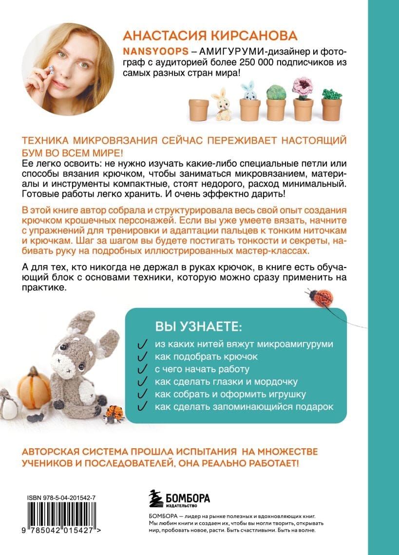 В книге собрана полная информация по созданию миниатюрных игрушек: от основ техники вязания крючком до тонкостей выбора инструментов и ниток, от секретов создания образа игрушки до их финальной отделки. Не забыта даже оригинальная упаковка, если миниатюра будет преподноситься в качестве подарка. А подарок этот по-настоящему волшебный. И подойдет любому, стоит лишь подобрать нужную игрушку к соответствующему поводу.