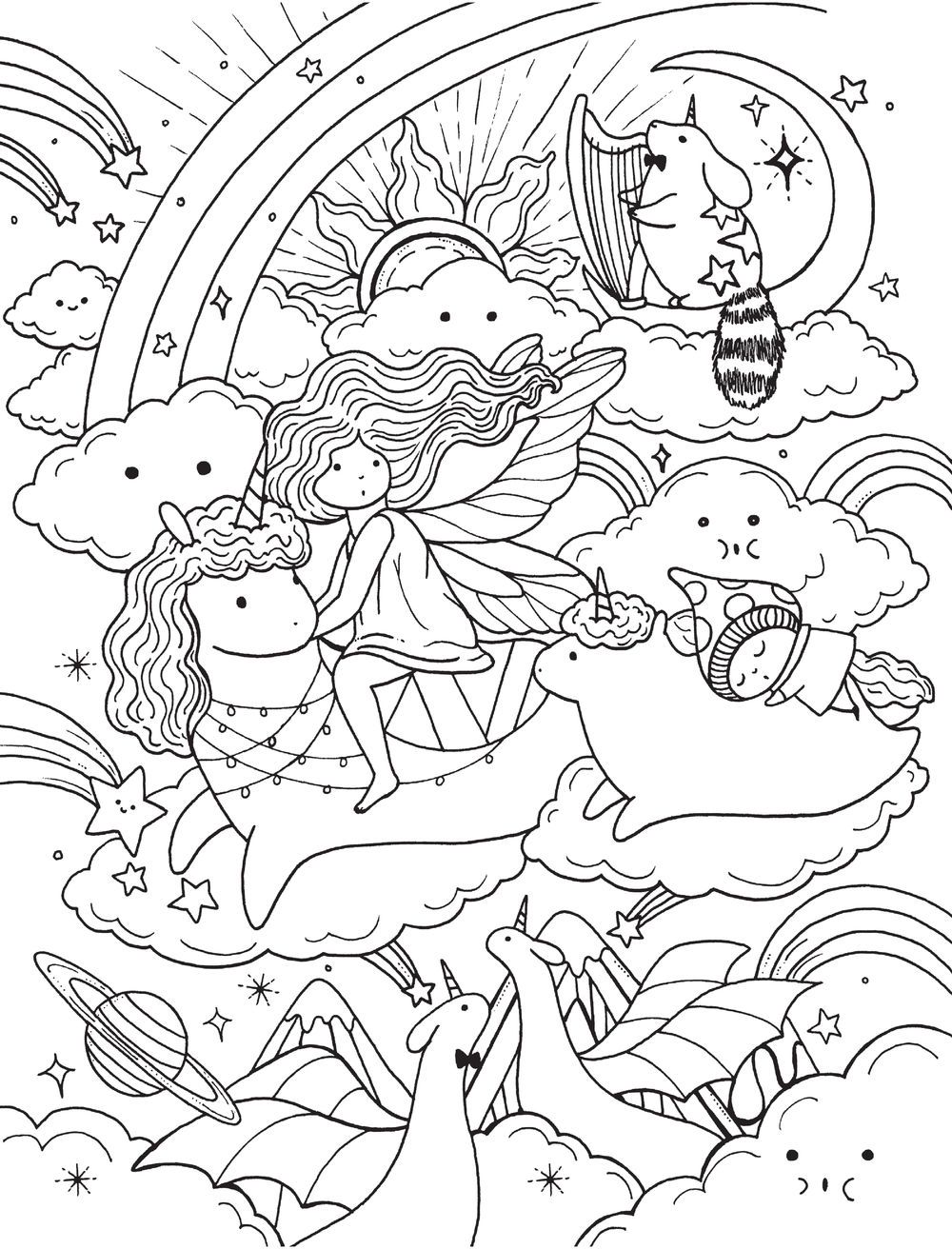 Окунитесь в фантастический мир художницы Лулу Майо, полный доброты, очарования и удивительных существ! Рыбы-единороги и крылатые кошки, лесные музыканты и подводные аттракционы, невероятные замки-города и уютные домики-грибочки, милейшие драконы и маленькие феи тронут ваше сердце, и руки сами потянутся к карандашам, чтобы скорее оживить ни на что не похожие, полные изящных деталей страницы. Для всех поклонников раскрасок, влюблённых в Сказку!