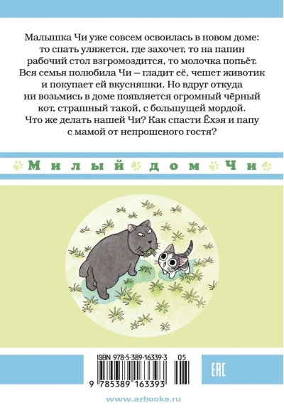 Малышка Чи уже совсем освоилась в новом доме: то спать уляжется, где захочет, то на папин рабочий стол взгромоздится, то молочка попьет. Вся семья полюбила Чи – гладит её, чешет животик и покупает ей вкусняшки. Но вдруг откуда ни возьмись в доме появляется огромный чёрный кот, страшный такой, с большущей мордой. Что же делать нашей Чи? Как спасти Ёхэя и папу с мамой от непрошеного гостя?