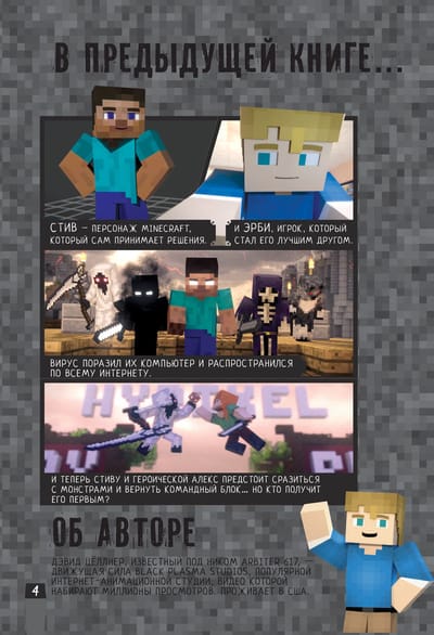 Minecraft. Вирусная история – это графический роман о персонаже из Minecraft, который больше не находится под контролем игрока. Эта история основана на серии видеороликов канала Black Plasma Studios на YouTube, которые собрали миллионы просмотров. Вирус продолжает распространяться, и в этом ему помогает злодейская команда Хиробрина. А наш герой Стив ведёт тяжёлую борьбу со своей тёмной стороной. Смогут ли друзья помочь ему… или мир Minecraft будет обречён? Эта эпическая сказка от великолепных аниматоров Black Plasma представляет собой потрясающую смесь эпического фэнтези, фантастических приключений, юмора и веселья. Для среднего школьного возраста.