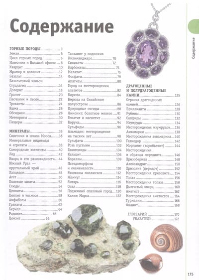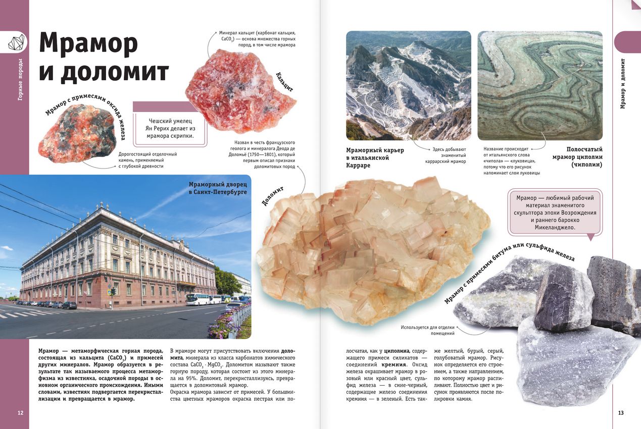 Эта увлекательная детская энциклопедия в картинках откроет для вас удивительный мир камней. В книге подробно описаны основные горные породы, которые включают в себя множество минералов. В коротких, но емких статьях представлены самые разные минералы, рассказано, как они используются в промышленности и технике, а также в ювелирном деле, когда искусные мастера превращают их в сверкающие драгоценности. В книге содержится информация не только о земных камнях, но и о небесных, прилетевших к нам из глубин космоса. Знакомит энциклопедия и с горными породами и минералами Марса — планеты, во многом похожей на Землю. Но главное — на страницах энциклопедии приведено множество ярких иллюстраций, которые дают читателю возможность в мельчайших подробностях рассмотреть минералы и драгоценные камни. Кроме того, книга содержит глоссарий и алфавитный указатель, которые помогут быстро найти сведения об интересующем минерале или объяснить незнакомое понятие. Познавать богатейший мир минералов вместе с этой энциклопедией интересно и радостно! Для среднего и старшего школьного возраста.