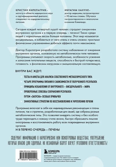 Каждый четвертый человек во всем мире страдает ожирением печени, и этот показатель растет — можно ожидать, что распространенность и тяжесть ожирения печени будут увеличиваться параллельно с глобальным ростом заболеваемости сахарным диабетом 2-го типа. Новое исследование показывает, что заболевания печени и вес не обязательно взаимосвязаны. Из книги вы узнаете о четырех метаболических типах и о способах усваивать питательные вещества каждого из них. Также автор предлагает конкретные системы питания, которые будут наиболее полезны и выполнимы для каждого типа. В конце вас ждут планы питания и рецепты, которые помогут быстро перестроиться на программу регенерации печени.