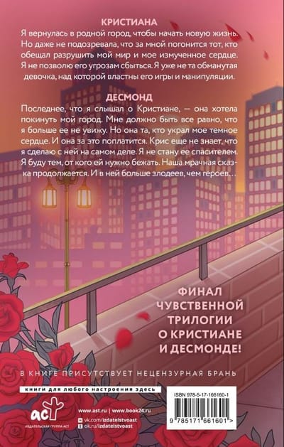 Последнее, что я слышал о Кристиане, — она хотела покинуть мой город. Мне должно быть все равно, что я больше ее не увижу. Но она та, кто украл мое темное сердце. И она за это поплатится. Крис еще не знает, что я сделаю с ней на самом деле. Я не стану ее спасителем. Я буду тем, от кого ей нужно бежать. Наша мрачная сказка продолжается. И в ней больше злодеев, чем героев…