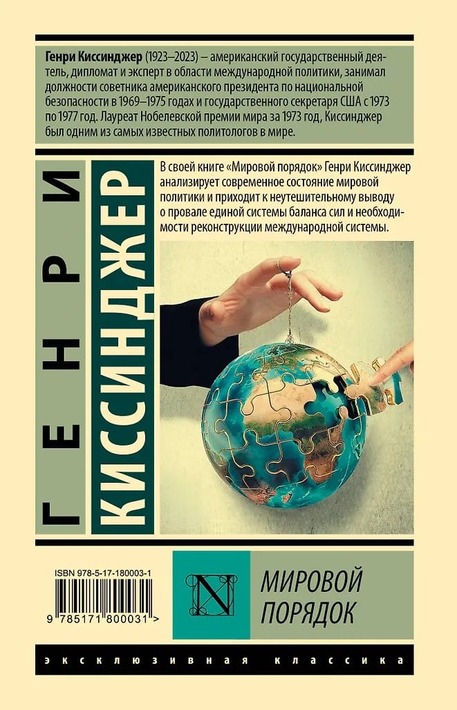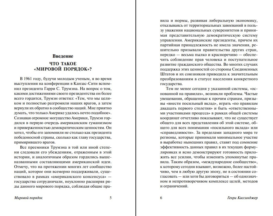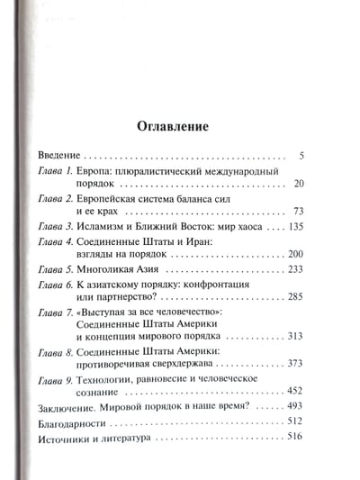 В своей книге «Мировой порядок» Генри Киссинджер анализирует современное состояние мировой политики и приходит к неутешительному выводу о провале единой системы баланса сил и необходимости реконструкции международной системы.