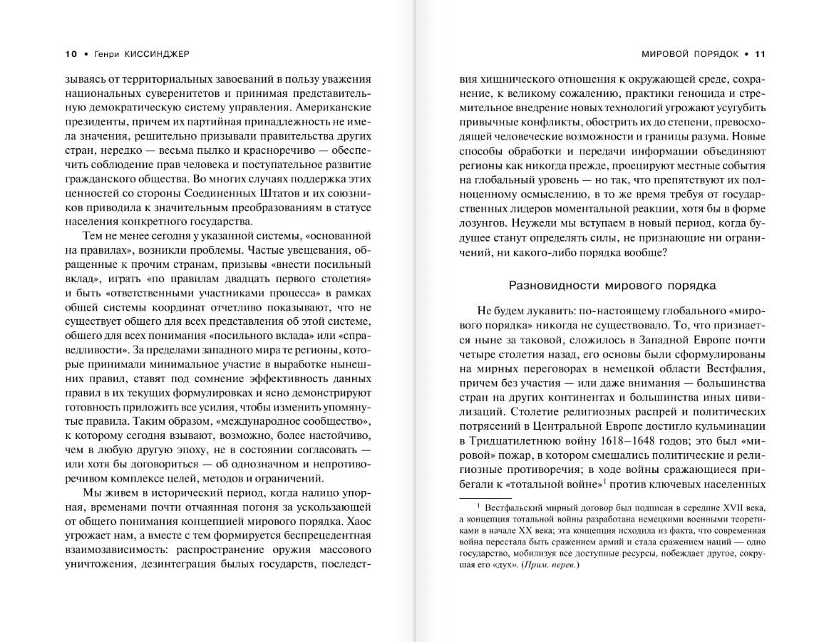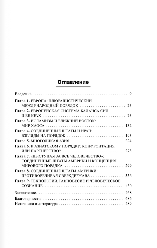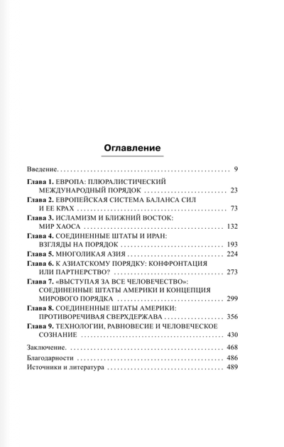 В своей книге «Мировой порядок» Генри Киссинджер анализирует современное состояние мировой политики и приходит к неутешительному выводу о провале единой системы баланса сил и необходимости реконструкции международной системы.