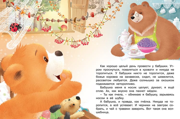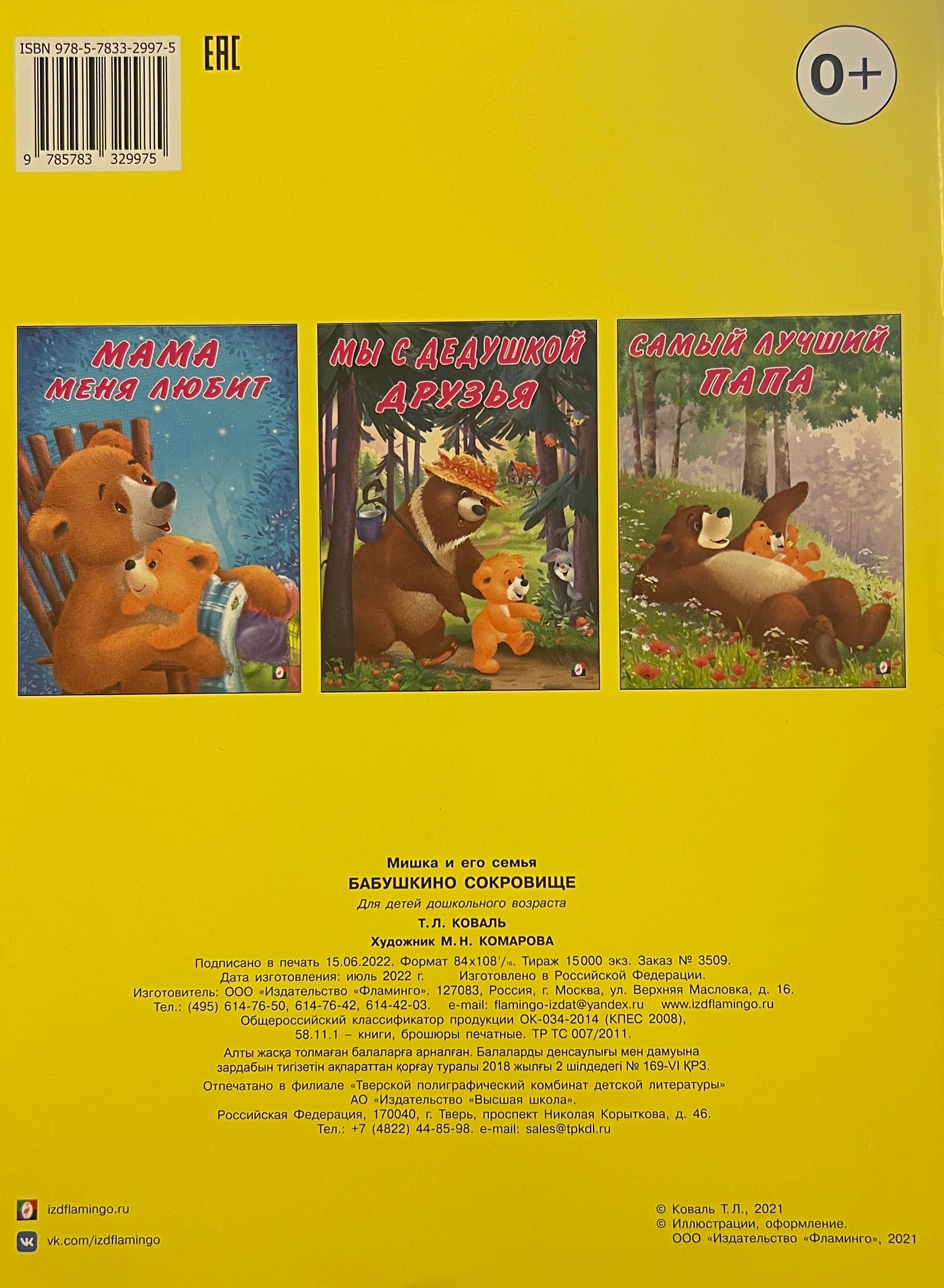 Книга «‎Бабушкино сокровище»‎ из серии «‎Мишка и его семья»‎ - это добрая история про непоседливого медвежонка и его бабушку от детской писательницы Т. Коваль, которую отлично дополняют забавные яркие иллюстрации М. Комаровой. Теплая милая сказка для уютного семейного чтения расскажет юным читателям о том, как хорошо провести целый день у бабушки. Волшебная история про животных поможет расширить кругозор и словарный запас ребенка. Книжка быстро станет любимой, а чтение на ночь перед сном - традицией. Издание с простыми, доступными для понимания текстами отлично подойдет как для чтения взрослыми детям с рождения до года, для детей возрастом 1-5 лет и старше, так и для первого самостоятельного чтения. Книги большого формата, в мягкой обложке, на скрепке.