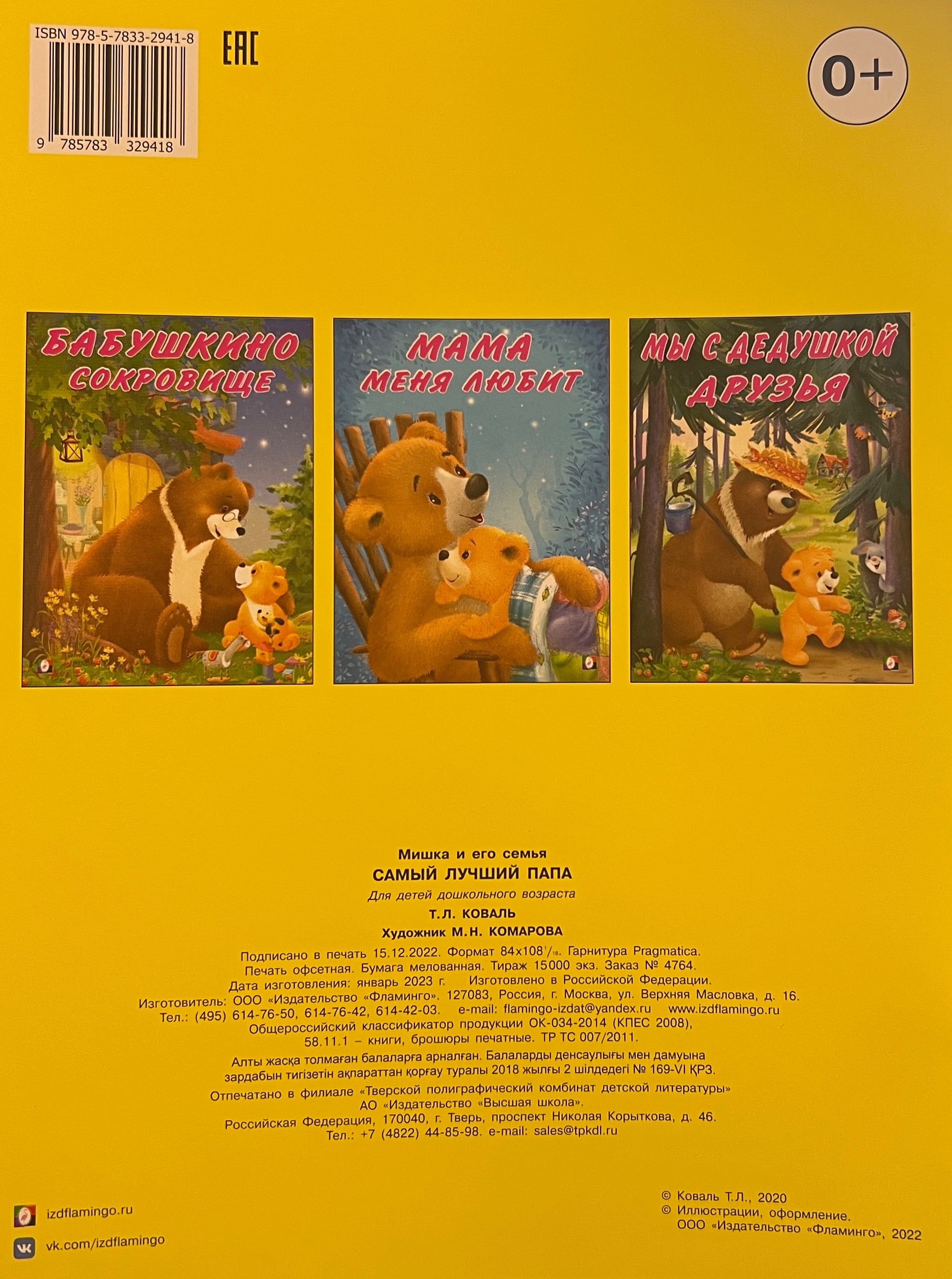 Книга «‎Самый лучший папа»‎ из серии «‎Мишка и его семья»‎ - это добрая история про непоседливого медвежонка и его папу от детской писательницы Т. Коваль, которую отлично дополняют забавные яркие иллюстрации М. Комаровой. Теплая милая сказка для уютного семейного чтения расскажет юным читателям о том, как здорово провести целый день с папой. Волшебная история про животных поможет расширить кругозор и словарный запас ребенка. Книжка быстро станет любимой, а чтение на ночь перед сном - традицией. Издание с простыми, доступными для понимания текстами отлично подойдет как для чтения взрослыми детям с рождения до года, для детей возрастом 1-5 лет и старше, так и для первого самостоятельного чтения. Книги большого формата, в мягкой обложке, на скрепке.
