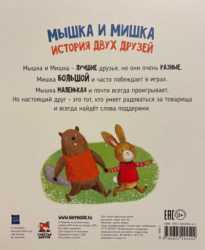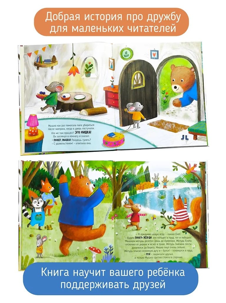 Мышка и Мишка – лучшие друзья, но они очень разные. Мишка большой и часто побеждает в играх. Мышка маленькая и почти всегда проигрывает. Но настоящий друг – это тот, кто умеет радоваться за товарища и всегда найдет слова поддержки. Эта увлекательная история в прозе для детей от 3 лет, для дошкольников и младших школьников, идеально подходит для совместного чтения перед сном.