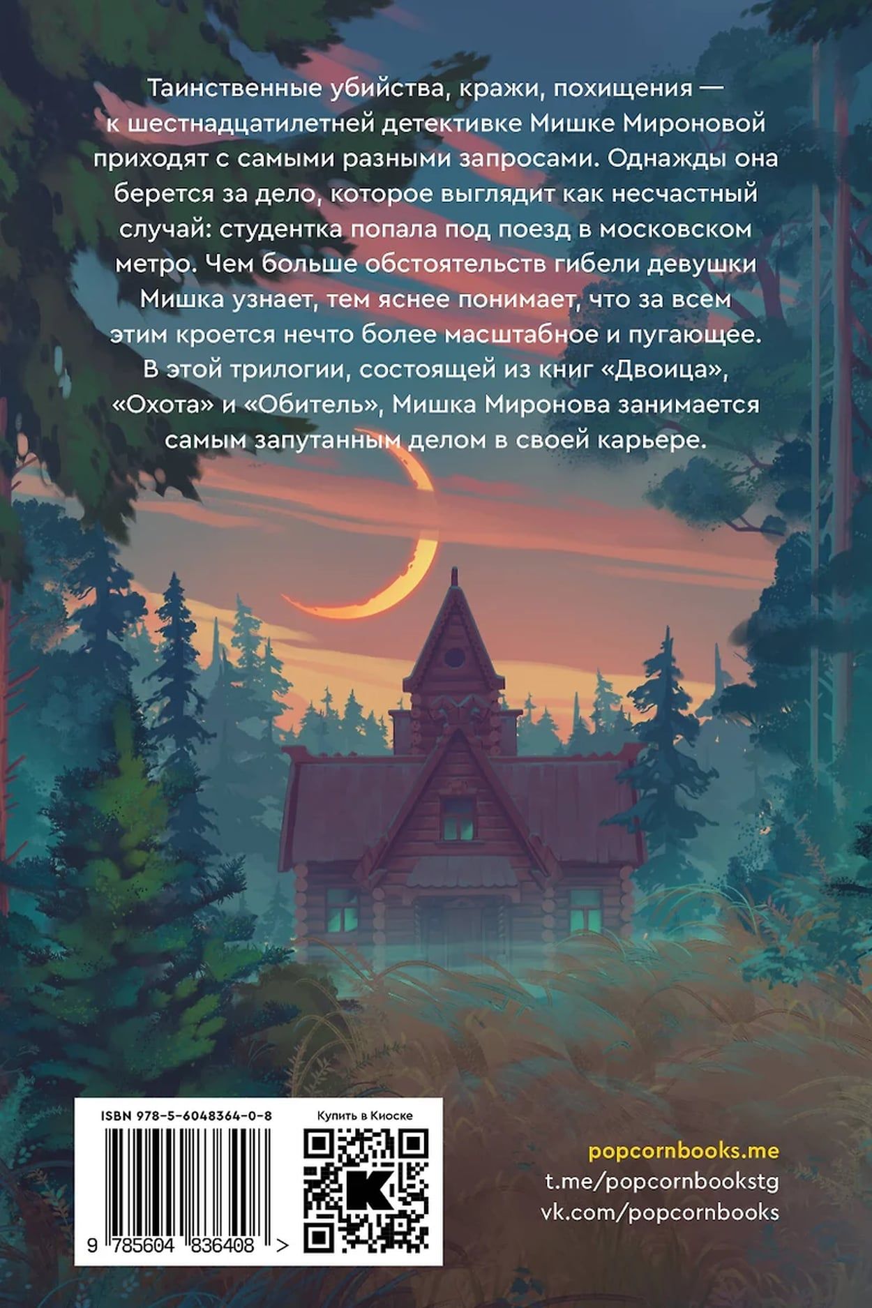 В этой трилогии, состоящей из книг «Двоица», «Охота» и «Обитель», детективка Мишка Миронова занимается самым запутанным делом в своей карьере.