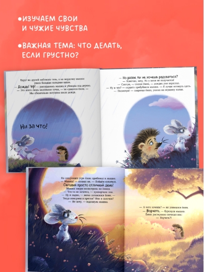«Мышка, мышка, не грусти!» — уютная сказка о том, что грустить — это не плохо. Книжка научит ребенка спокойно проживать грусть и расскажет, как помочь другу, у которого плохое настроение. А благодаря забавным персонажам, оживающим на иллюстрациях автора, читать эту книжку будет еще увлекательнее!