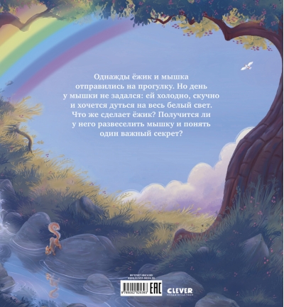 Однажды ежик и мышка отправились на прогулку. Но день у мышки не задался: ей холодно, скучно и хочется дуться на весь белый свет. Что же сделает ежик? Получится ли у него развеселить мышку и понять один важный секрет?