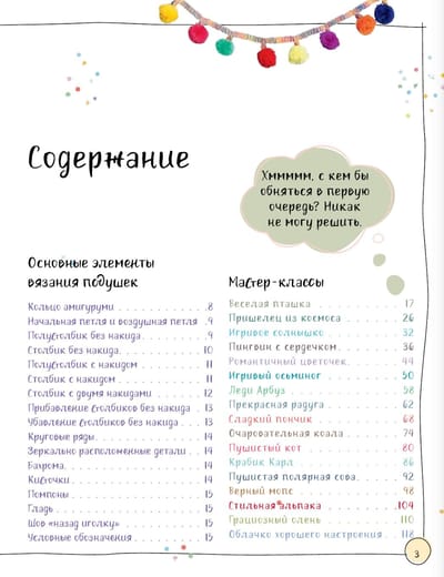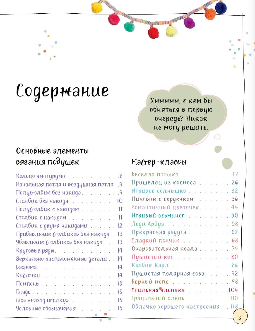 В этой книге собрано 17 мастер-классов по вязанию забавных подушек. С помощью подробных описаний по рядам вы сможете связать милого котика, веселое солнышко, прекрасную радугу, крутого осьминога и других персонажей.