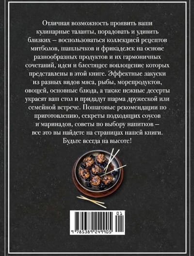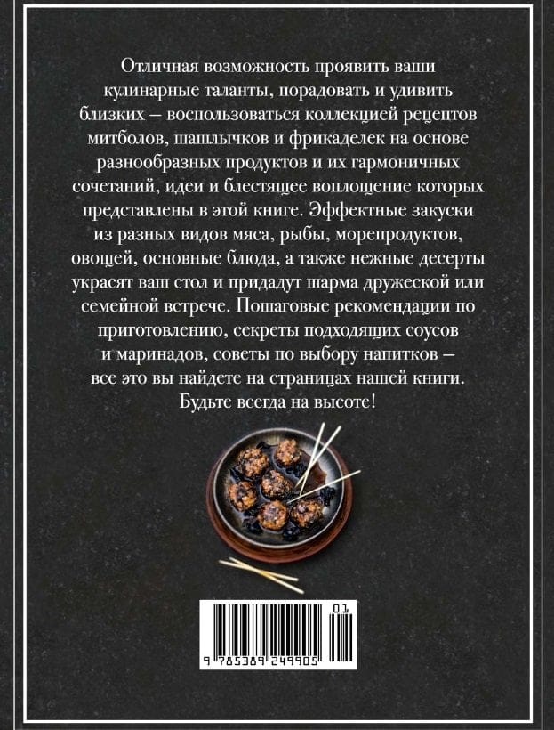 Домашняя кухня становится по-настоящему уютной и притягательной, когда на ней с душой и фантазией готовят разнообразные блюда, чтобы порадовать близких. А если в числе этих блюд будут шашлычки, митболы и фрикадельки, приготовленные по рецептам из этой книги, то вам гарантирован не только вкусный обед или ужин, но и поистине эстетическое наслаждение — особенно в праздник! Любители мяса могут выбрать, что их заинтересует в первую очередь: митболы из свинины с арахисом и красным луком или из баранины по-мароккански, шашлычки из утки в апельсиновой глазури или из говядины, маринованной с тайским базиликом и соей… Те, кто предпочитает рыбу и морепродукты, обратят внимание на фрикадельки из лосося, трески или креветок со всевозможными пряными добавками; ценители пользы и яркого вкуса овощей и фруктов также найдут для себя несколько отличных рецептов закусок и десертов на их основе — в эффектном виде шашлычков или в нежном исполнении шариков или фрикаделек. Пусть у вас на кухне витают запахи ваших любимых приправ и ароматы домашних блюд — с помощью этой книги вы добьетесь отличных результатов и получите в награду благодарные улыбки гостей.