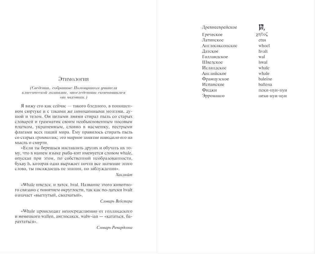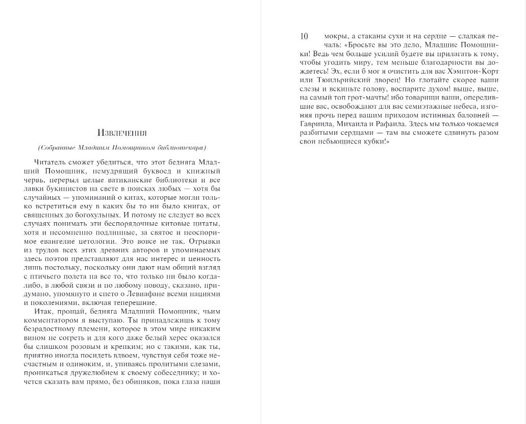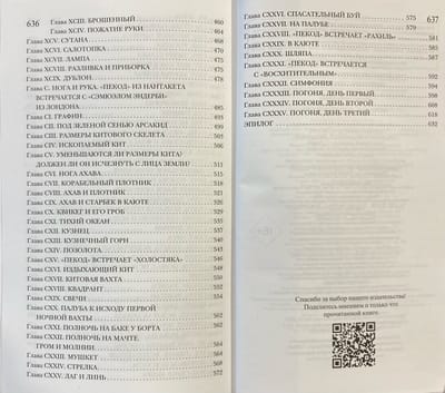 Одна из лучших книг о судьбе и неизбежном роке, фатуме. Песнь печали и трагедии. Брызги соленой воды на лице, скрежет мачт и порывы ледяного ветра врываются в действительность со страниц романа. Пекод до сих пор плывёт по океану людских скорбей со своей командой выродков, ублюдков и людоедов, ища самое страшное чудовище, обитающее во вселенной. Страх — имя ему. Чтобы убить его в самих себе. Нет лучшей судьбы, большей доблести и большей чести. Отвага, перед которой меркнут герои Гомера. Песнь о страдании человеческой души, пробирающая до костей, до мурашек по коже.