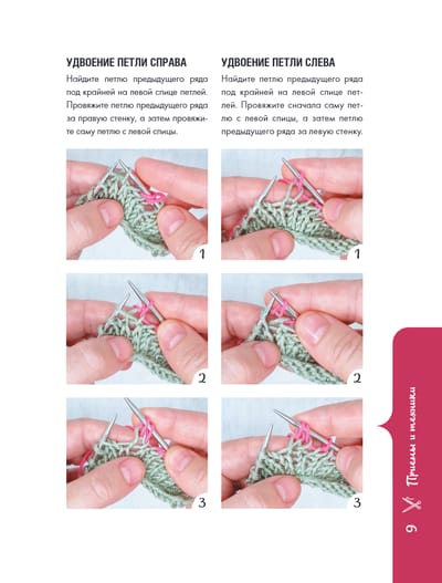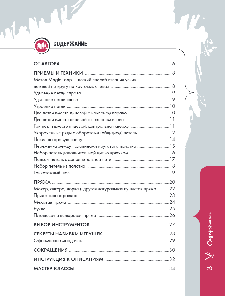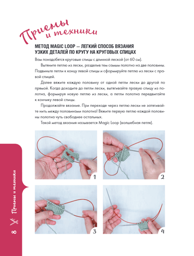 Подробные попетельные описания и, конечно, подробный раздел с техниками и приемами для тех, кто только учится вязать. Справится даже тот, кто только освоил лицевые и изнаночные.