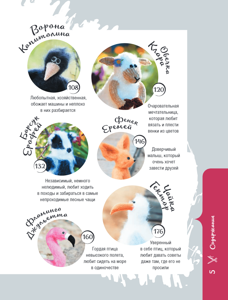 12 очаровательных персонажей, связанных на спицах, каждый со своим характером: