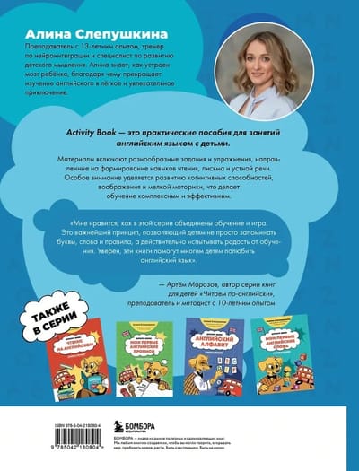 Activity Book — серия увлекательных и понятных пособий по английскому языку для детей. В каждой книге ребенок учится через игру: пишет, рисует, раскрашивает, запоминает новые слова и постепенно делает уверенные шаги в изучении английского.