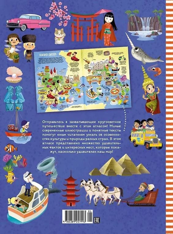 Отправьтесь в захватывающее кругосветное путешествие вместе с этим атласом! Милые современные иллюстрации и понятные тексты помогут юным читателям узнать об особенностях культуры и природы разных стран. В атласе представлено множество удивительных фактов и интересных мест, которые покажут, насколько удивителен наш мир!
