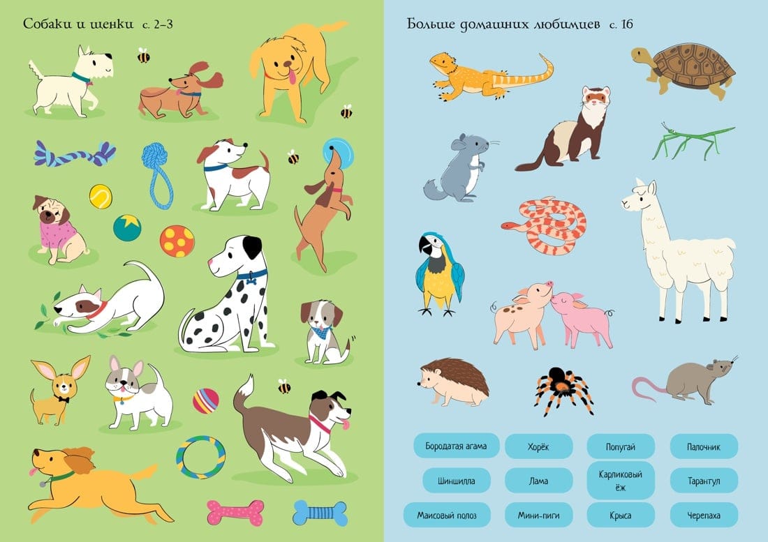 В этой книжке тебя ждут милые и забавные питомцы – котята, щенки, хомячки и попугаи. Подбери зверятам домики, приклей игрушки и лакомства.