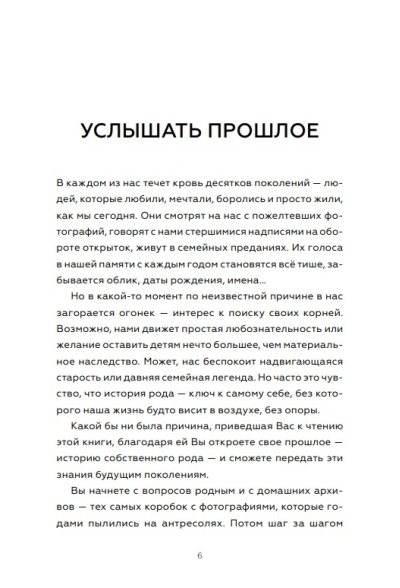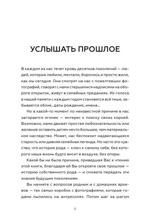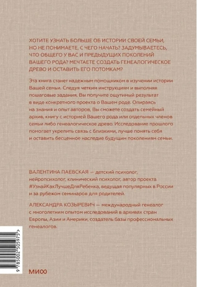 Эта книга станет надежным помощником в изучении истории вашей семьи. Следуя четким инструкциям и выполняя пошаговые задания, вы получите ощутимый результат в виде конкретного проекта о вашем роде. Опираясь на знания и опыт авторов, вы сможете создать семейный архив, книгу с историей вашего рода или отдельных членов семьи или генеалогическое древо. Исследование прошлого помогает не только узнать, как жили ваши предки, но и укрепить связь с близкими, лучше понять себя и оставить бесценное наследие будущим поколениям семьи.