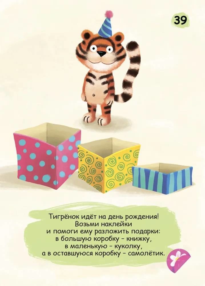 В набор входят 30 двухсторонних многоразовых карточек с занимательными и интересными заданиями, а также комплект виниловых наклеек, с помощью которых можно многократно выполнять ряд упражнений.