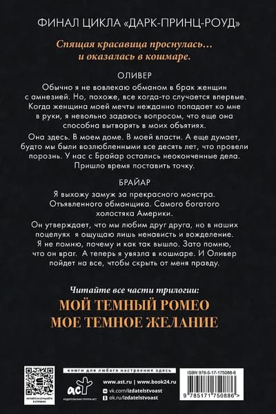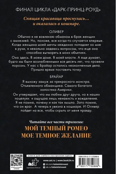 Я выхожу замуж за прекрасного монстра. Отъявленного обманщика. Самого богатого холостяка Америки. Он утверждает, что мы любим друг друга, но в наших поцелуях я ощущаю лишь ненависть и вожделение. Я не помню, почему и как так вышло. Зато помню, что он враг. А теперь я увязла в кошмаре. И Оливер пойдет на все, чтобы скрыть от меня правду.