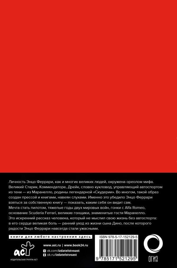 Личность Энцо Феррари, как и многих великих людей, окружена ореолом мифа. Великий Старик, Коммендаторе, Дрейк, словно кукловод, управляющий автоспортом из тени — из Маранелло, родины легендарной «Скудерии». Во многом такой образ создан прессой и книгами, навеян слухами. Именно это убедило Энцо Феррари взяться за собственную книгу — показать, каким себя видит он сам.