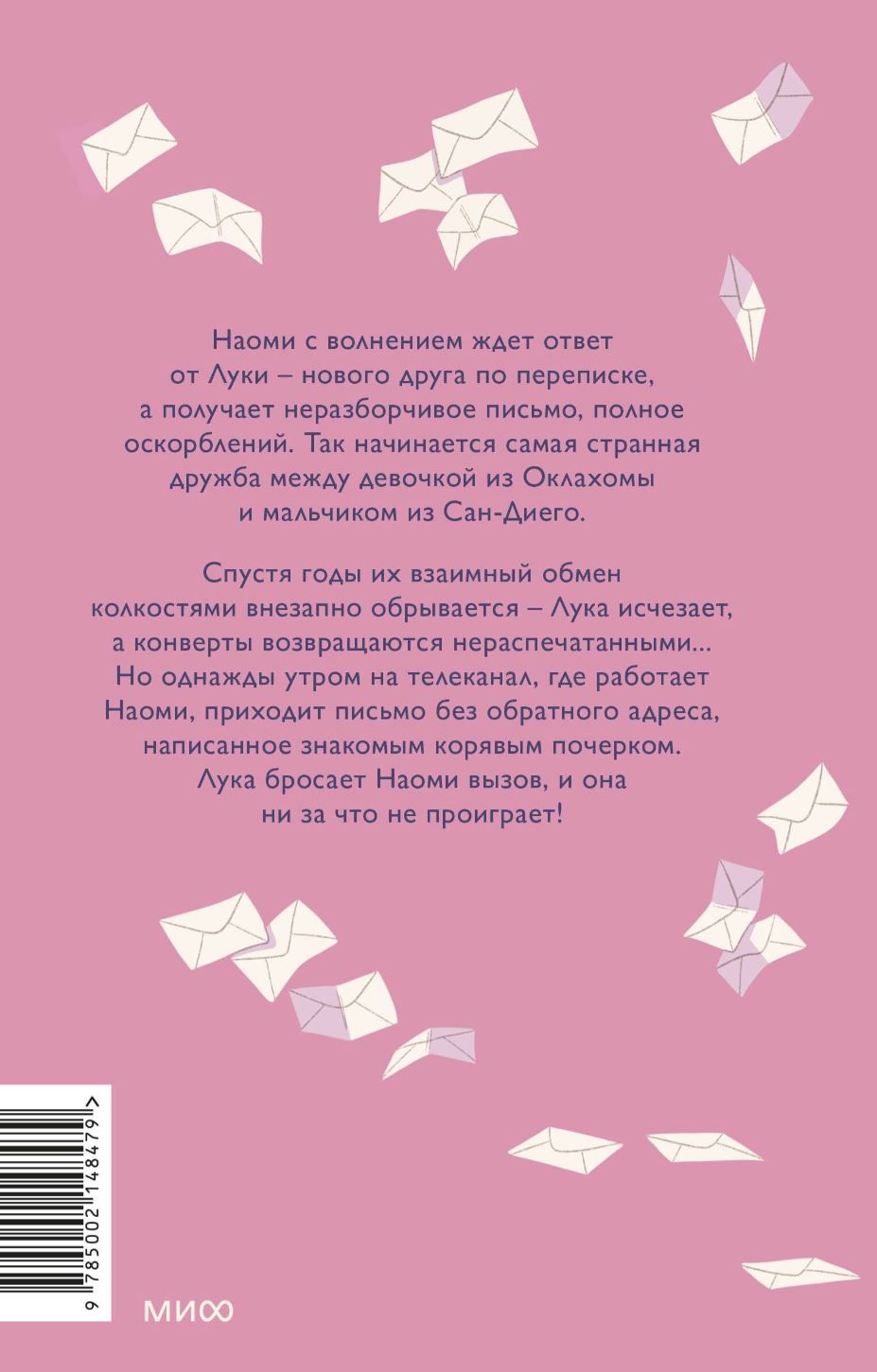 «Надеюсь, в тебя ударит молния!» Наоми с волнением ждет ответ от Луки – нового друга по переписке, а получает неразборчивое письмо, полное оскорблений. Так начинается самая странная дружба между девочкой из Оклахомы и мальчиком из Сан-Диего. Спустя годы их взаимный обмен колкостями внезапно обрывается – Лука исчезает, а конверты возвращаются нераспечатанными... Но однажды утром на телеканал, где работает Наоми, приходит письмо без обратного адреса, написанное знакомым корявым почерком. Лука бросает Наоми вызов, и она ни за что не проиграет!