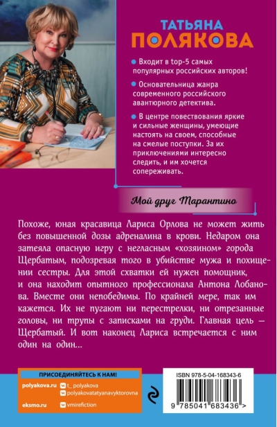 Похоже, юная красавица Лариса Орлова не может жить без повышенной дозы адреналина в крови. Недаром она затеяла опасную игру с негласным «хозяином» города Щербатым, подозревая того в убийстве мужа и похищении сестры. Для этой схватки ей нужен помощник, и она находит опытного профессионала Антона Лобанова. Вместе они непобедимы. По крайней мере, так им кажется. Их не пугают ни перестрелки, ни отрезанные головы, ни трупы с записками на груди. Главная цель - Щербатый. И вот, наконец, Лариса встречается с ним один на один…