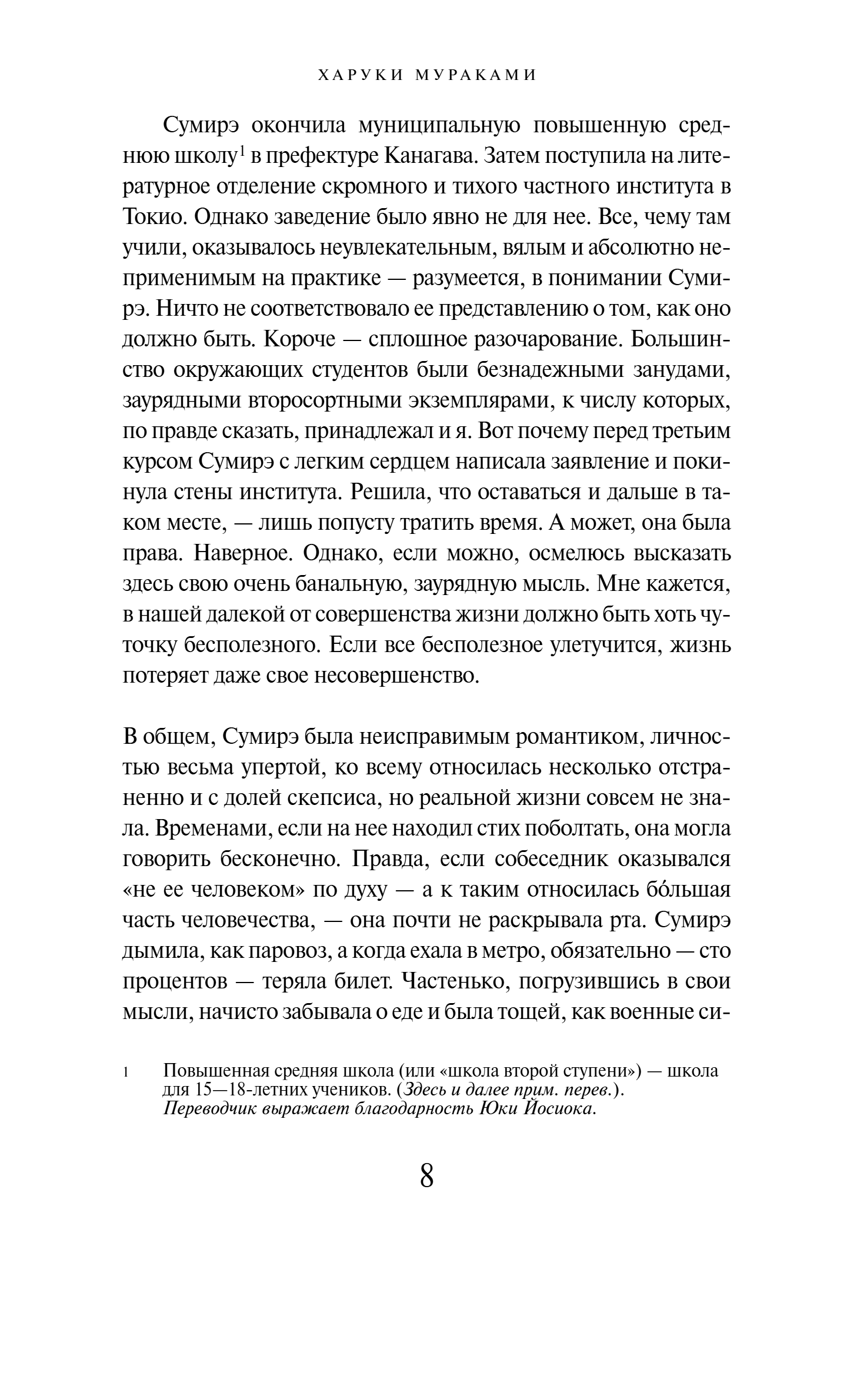 …Эта женщина любит Сумирэ. Но не чувствует к ней никакого сексуального влечения. Сумирэ любит эту женщину и хочет ее. Я люблю Сумирэ и меня к ней влечет. Я нравлюсь Сумирэ, но она не любит и не хочет меня. Я испытываю сексуальное влечение к одной женщине — имя не важно. Но не люблю ее. Все так запутано, что сильно смахивает на какую-нибудь экзистенциалистскую пьесу. Сплошные тупики, никто никуда не может выйти. Должны быть альтернативы, но их нет. А Сумирэ в одиночестве уходит со сцены… «Мой любимый sputnik» (1999) классика современной японской литературы Харуки Мураками – один из самых загадочных романов конца ХХ века.