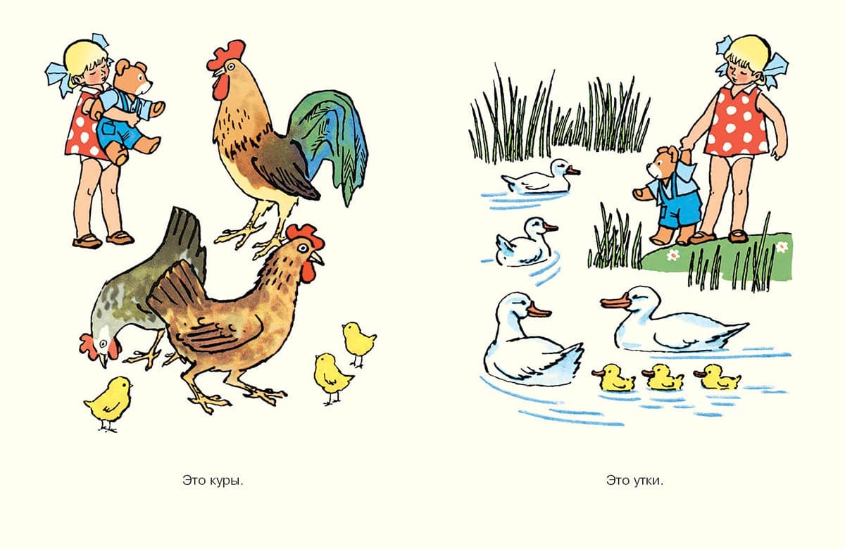 Как же здорово отправиться на прогулку вместе с плюшевым Мишкой! Можно познакомиться с курами и утками, черным Шариком и сердитым козленком и даже искупаться в речке. Доброе стихотворение Зинаиды Александровой для самых маленьких проиллюстрировал Генрих Вальк - один из известнейших отечественных художников детской книги.