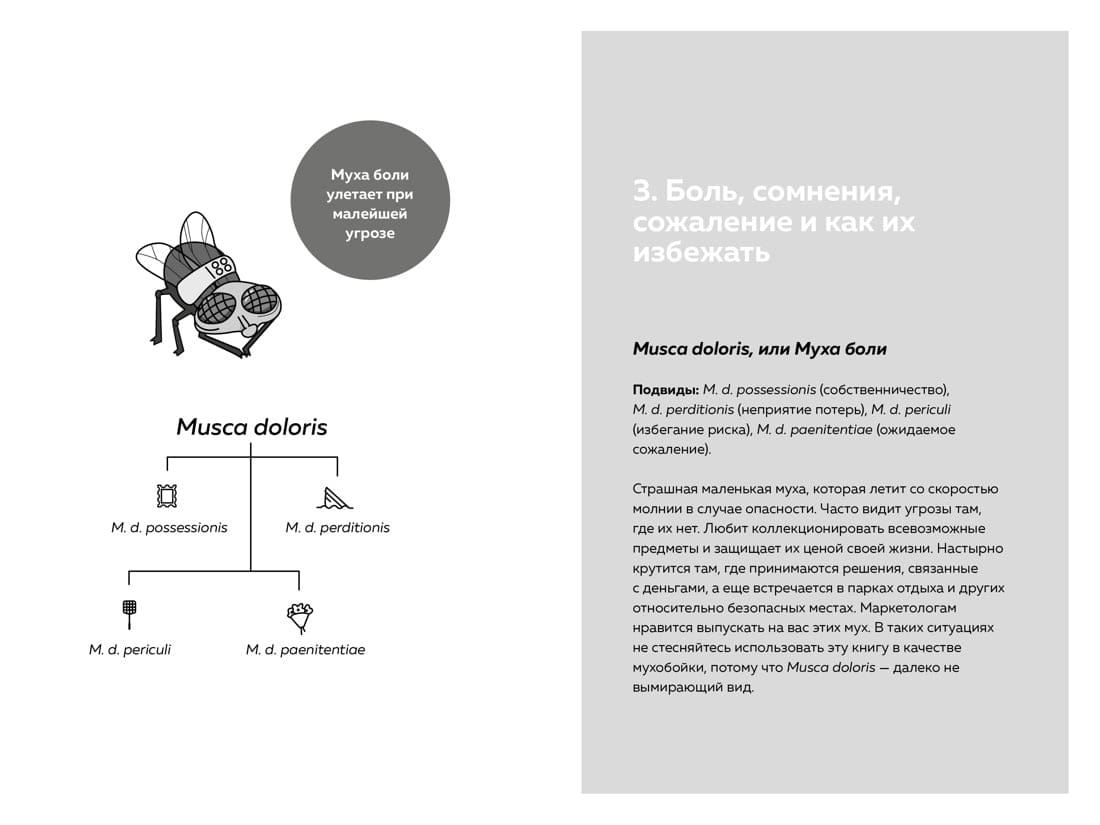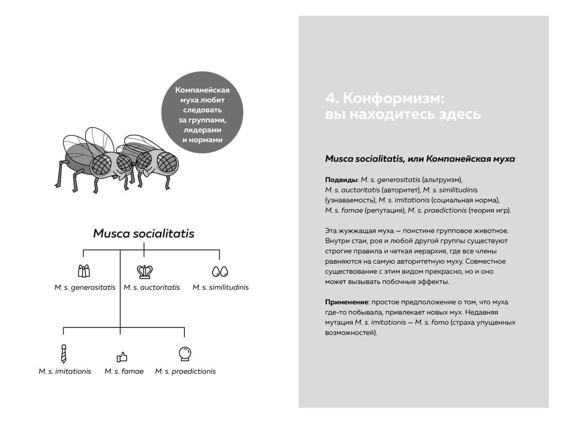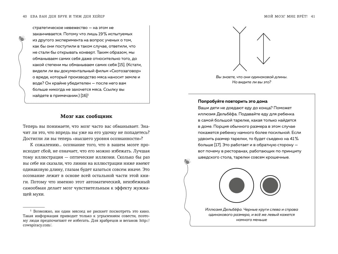 Проводником в этом занимательном путешествии выступит самая обыкновенная… жужжащая муха! Эффектом жужжащей мухи авторы называют различные когнитивные искажения и ошибки в мышлении, из-за которых мы боимся выходить из зоны комфорта, совершаем одни и те же ошибки в состоянии стресса и так сильно жаждем вписываться в социальные нормы. Жужжащая муха настигнет вас где угодно, от мишленовского ресторана до нотариальной конторы. Как и от мухи настоящей, от нее нигде не скрыться. Более того, ее эффекты часто используют маркетологи, политики, экономисты и многие другие, даже если вы этого не замечаете. На конкретных примерах из жизни и статистических данных авторы расскажут, как распознать эффекты жужжащей мухи в повседневной жизни, избежать их негативных последствий, справиться с соблазнами и предрассудками. Эта книга вручит вам мухобойку и научит не только принимать верные решения и здраво оценивать окружающую обстановку, но даже пользоваться ошибками мышления во благо.