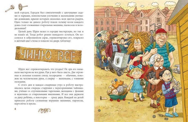 Робот Шруп — мастер на все свои шесть рук: он может починить что угодно! Будь то сломанная стиральная машинка, переставший включаться чайник или потерявшая голову кукла. Но однажды и для Шрупа находится по-настоящему трудная задача: мальчик Жан просит починить... его маму! Роботу предстоит выяснить, как мамы устроены, завести дневник наблюдений за тысячью разных мам, вывести формулу светящейся мамы и, наконец, совершить великое открытие: чтобы починить маму, нужно сделать её счастливой! И тогда Шруп и Жан придумывают блестящий план... Эта необычная, очаровательная и немножко сказочная история с нев