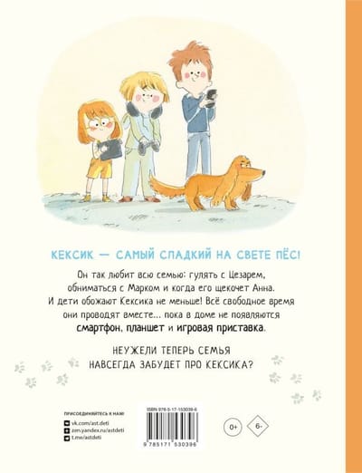 Кексик – самый сладкий на свете пёс! Он так любит всю семью: гулять с Цезарем, обниматься с Марком и когда его щекочет Анна. И дети обожают Кексика не меньше! Всё свободное время они проводят вместе… пока в доме не появляются смартфоны, планшеты и игровая приставка. Неужели теперь семья навсегда забудет про Кексика?