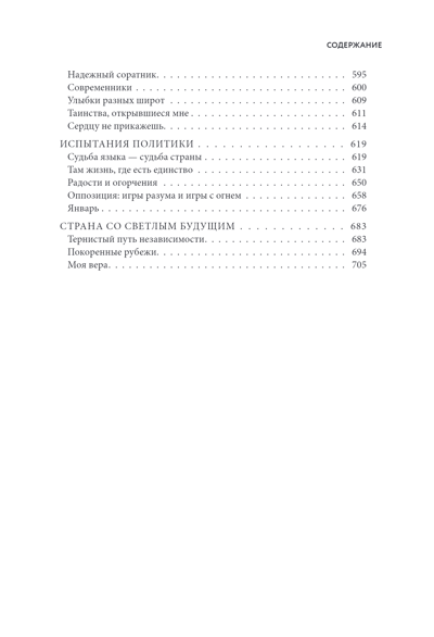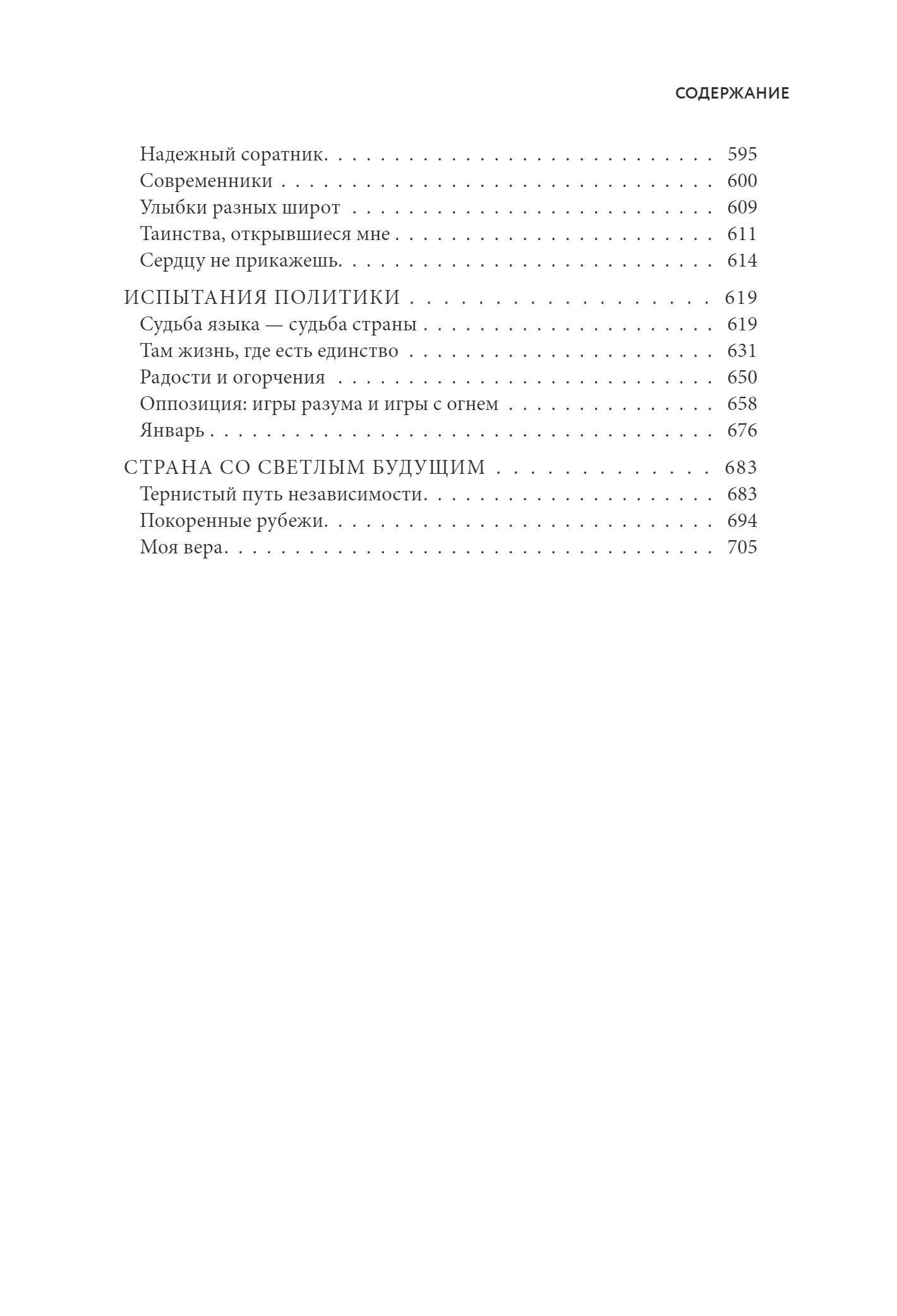 В книге мемуаров политик оглядывает свой жизненный путь, повествует о разных периодах и этапах независимого развития страны, анализирует успехи и неудачи на этом пути. Автор откровенно рассказывает о звездных часах и горьких уроках, пережитых в большой и многотрудной жизни.