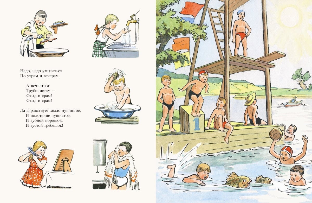 Всем мы знаем с детства, что если по утрам не умываться и не чистить зубы, то убегут и одеяло, и простыня, и подушка, и книжка, а из маминой спальни выйдет умывальников начальник и мочалок командир - знаменитый Мойдодыр. Который ругает и позорит маленьких грязнуль, а детей, уважающих чистоту, любит и хвалит.