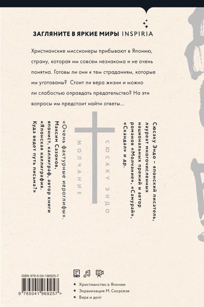 Одно из самых известных и глубоких произведений японской литературы, известных во всем мире. Роман «Молчание» повествует о реальных исторических событиях, имевших место в XVII веке в Японии, когда прибывших христиан подвергали гонениям.