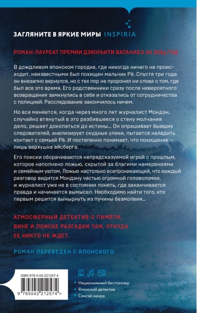 Он опрашивает бывших следователей, анализирует скудные улики, пытается наладить контакт с семьей Рё. И постепенно понимает, что похищение — лишь верхушка айсберга. Его поиски оборачиваются непредсказуемой игрой с прошлым, которое наполнено ложью, скрытой за благими намерениями и семейным уютом. Ложью настолько всепроникающей, что каждый разговор видится Мондэну частью огромной головоломки — и журналист уже не в состоянии понять, где заканчивается правда и начинается вымысел. Необходимо найти того, кто первым решится вынырнуть из пучины безмолвия…
