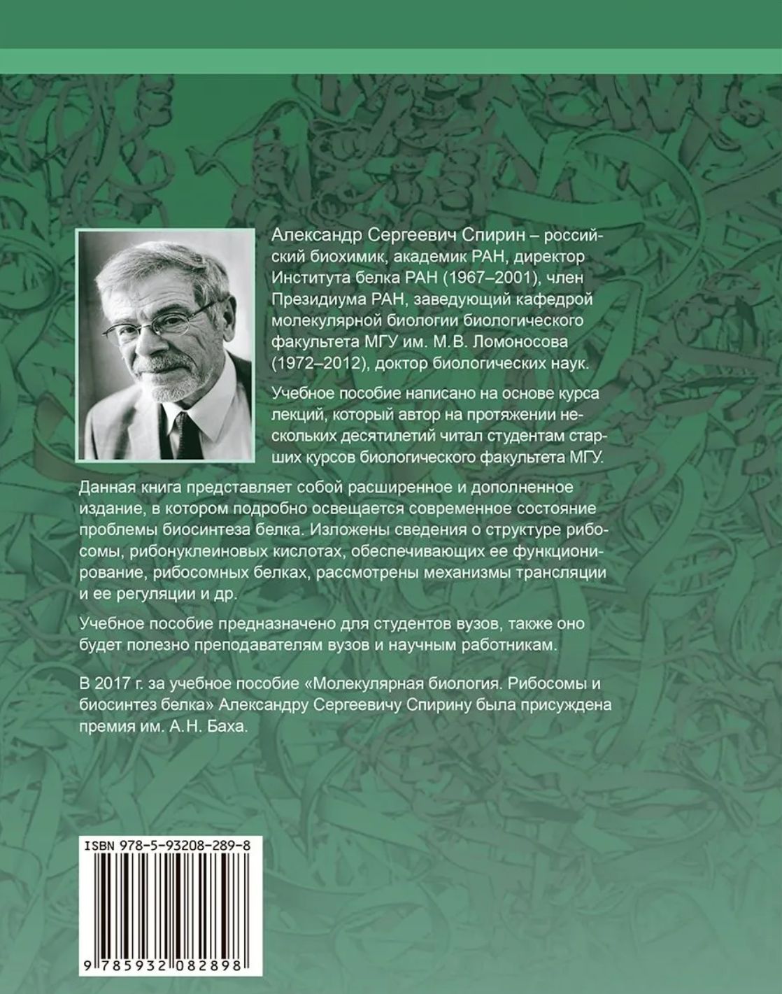 Учебное издание, написанное ведущим специалистом в данной области, посвящено структурным и функциональным аспектам биосинтеза белков. Книга охватывает часть общего курса молекулярной биологии, которую автор читает на биологическом факультете МГУ им. М. В. Ломоносова. Вместе с тем объем материала соответствует уровню требований кандидатского минимума по специальности «Молекулярная биология».