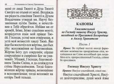 В молитвослов среднего формата, напечатанный крупным гражданским шрифтом, вошли молитвы утренние и на сон грядущим, а также последование ко Святому Причащению, совмещенные каноны, необходимые для подготовки к Святому Таинству, и благодарственные молитвы по Святом Причащении.