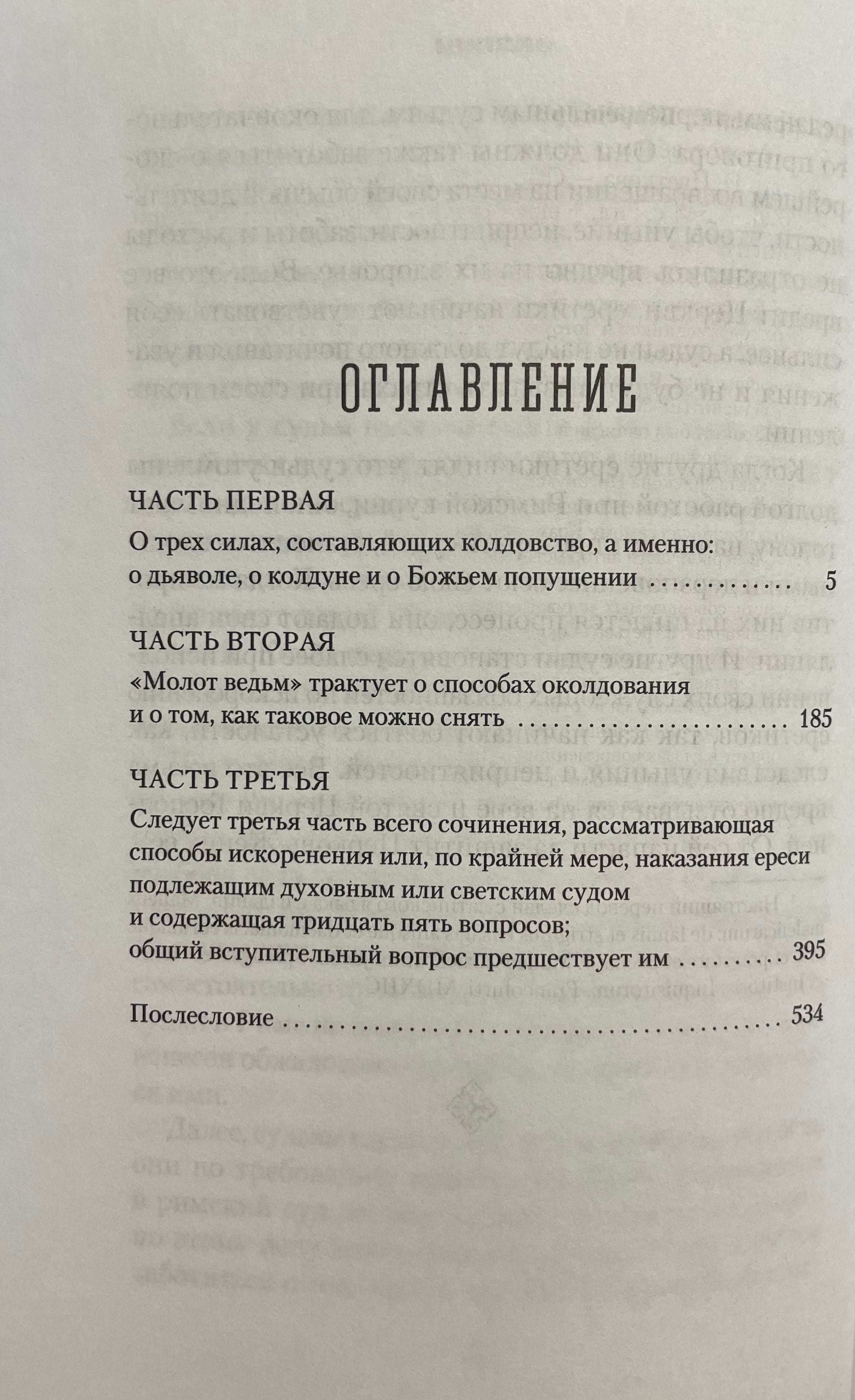 В первой части автор мстительно обвиняет должностных лиц, отрицающих колдовство, в ереси, во второй части в красках описывает типы злодейств, совершаемых «служителями», а вернее сказать, «служительницами дьявола», в третьей — формулирует для своих последователей правила судебного преследования и жестокого наказания ведьм…