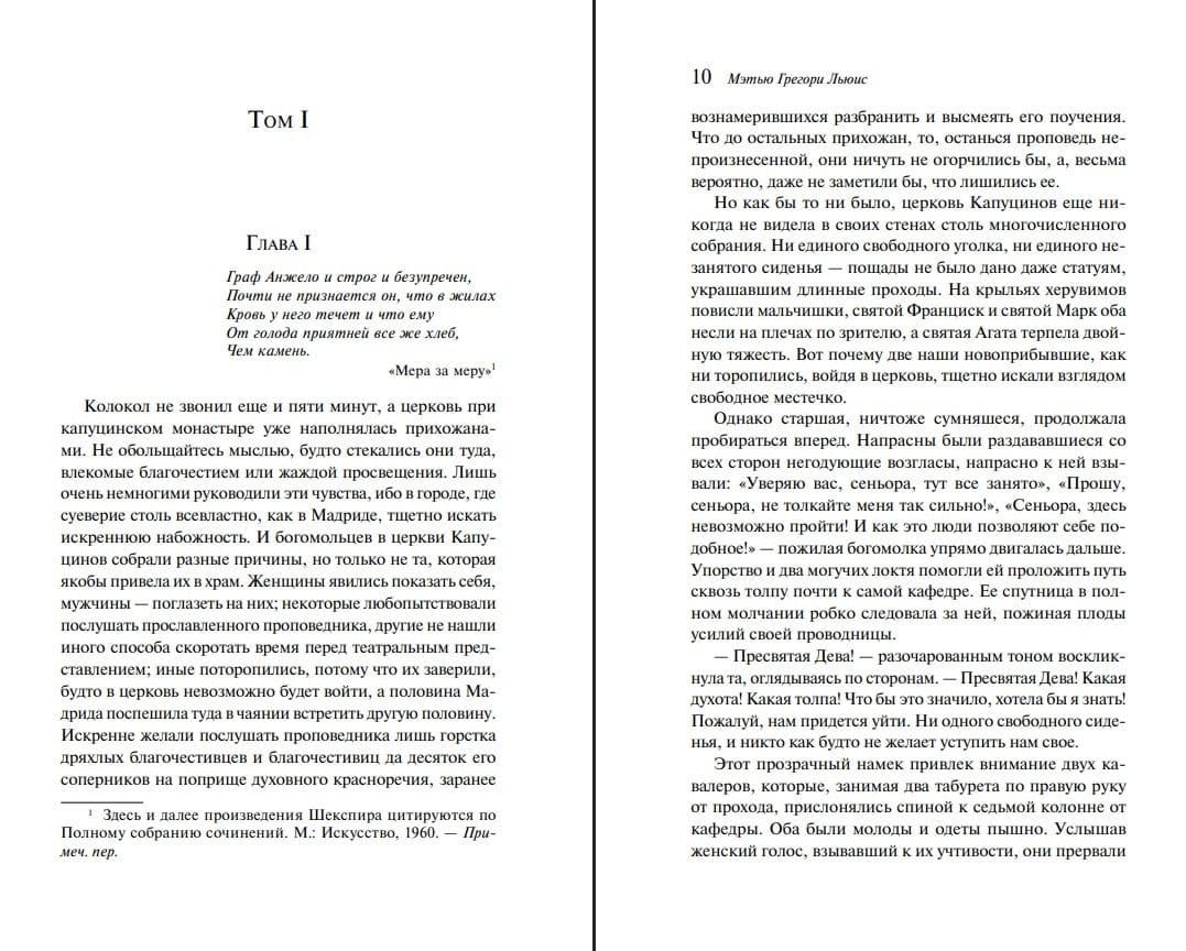 «Монах» принадлежит к типу романов со скандальной известностью, особенно учитывая, что его автору Мэтью Грегори Льюису на момент издания было всего 19 лет и он являлся членом Британского парламента. Роман, совершенно не похожий на произведения, которые Англия видела до его публикации в 1796 году. Зловещий, тревожный, он радикально изменил готическую литературу своим мрачным тоном, открытым повествованием о табуированных темах: колдовстве, сексе, антиклерикализме, убийствах, инцесте, эксцессах испанской инквизиции, сатанизме.