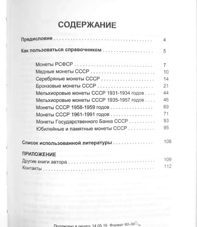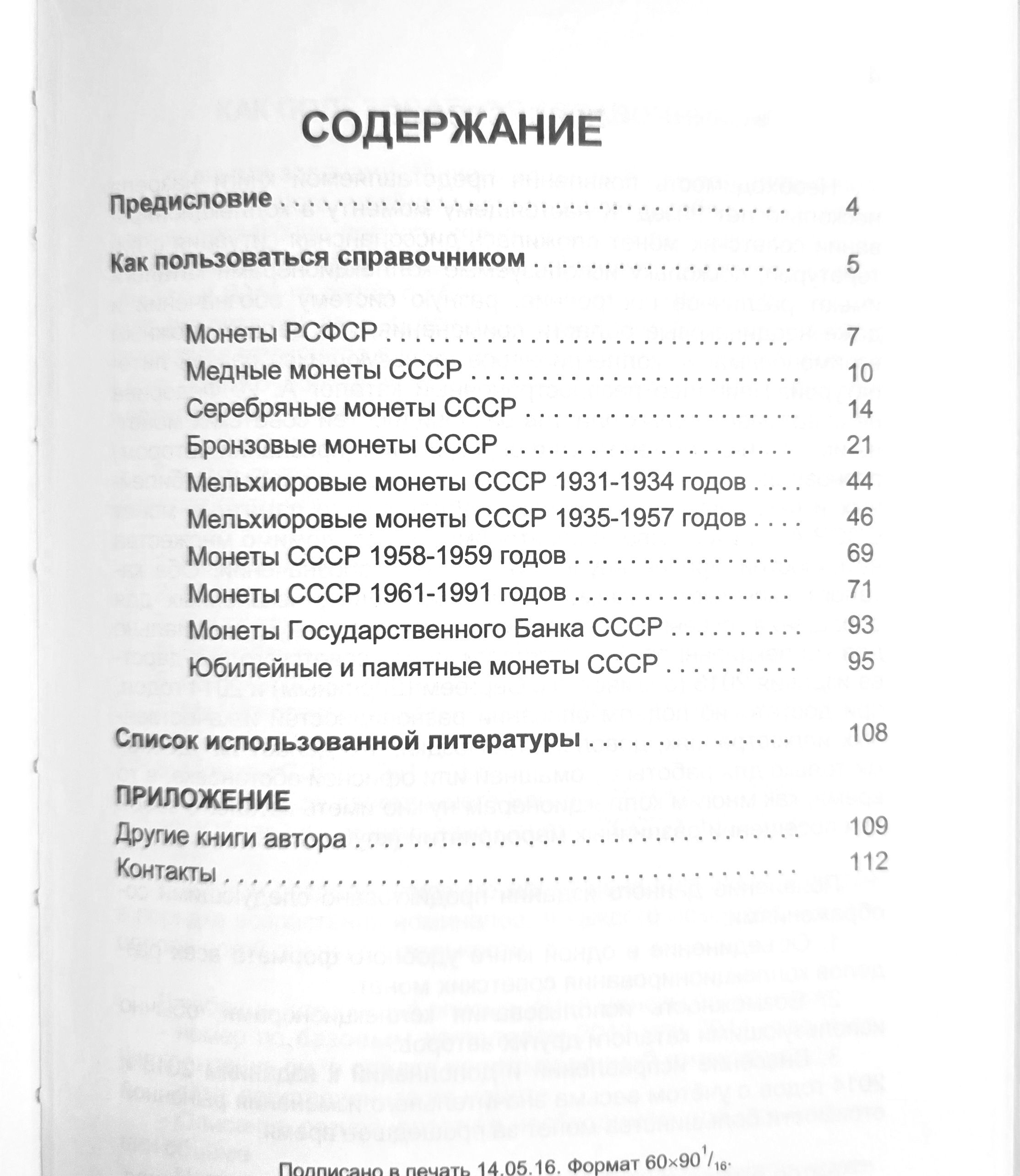 Настоящее издание является практическим по­собием для коллекционирования советских мо­нет и представляет собой изложение каталогов монет советского государства Ярослава Адрианова и Сергея Ширнина издания 2013 и 2014 годов со всеми дополнениями и изменениями по состоянию на май 2016 года, адаптированное с каталогами А.И. Федорина (издание VI 2015 г.) по стандартным монетам и А.И. Широкова (с со­авторами) по юбилейным и памятным монетам (издание 2012 г.).