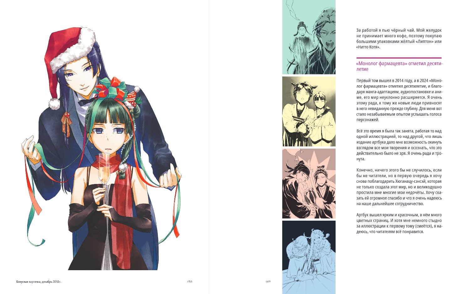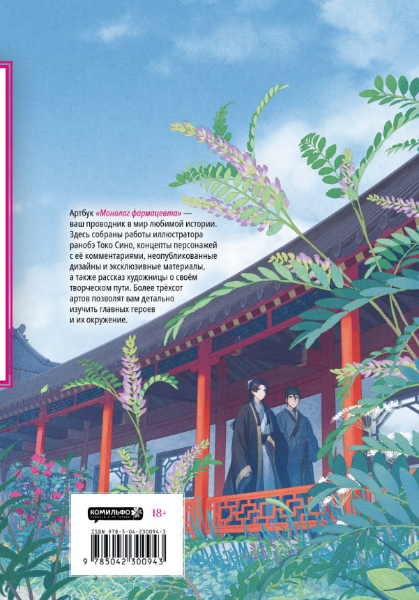 Артбук «Монолог фармацевта» — ваш проводник в мир любимой истории. Здесь собраны работы иллюстратора ранобэ Токо Сино, концепты персонажей с её комментариями, неопубликованные дизайны и эксклюзивные материалы, а также рассказ художницы о своём творческом пути. Более трёхсот артов позволят вам детально изучить главных героев и их окружение.